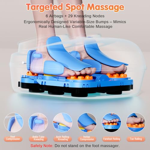 6 Air Bags+29 Nubs Precise Massage: Our foot massager for plantar fasciitis is built with 6 air bags+29 nubs each sides providing deep kneading, rolling, and air compression. This foot health massage machine mimick the hands of a professional masseur, crafted from centuries of combined expertise from hundreds of massage therapists and refined through real user feedback to ease plantar fasciitis, heel pain, and tight foot muscles, while relieving post-workout or all-day foot fatigue.