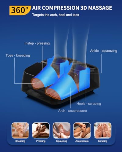 MOUNTRAX Foot Massager Machine with Heat, Foot Massager for Plantar Fasciitis, Neuropathy Pain, Shiatsu Foot Massager with Remote, Fits Feet Up to Men Size 12 (Black)