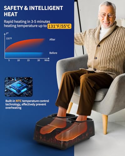 Safety & Intelligent Heat Function – Smart NTC Temperature Control Technology (Up to 131°F/55℃), rapid heats up with constant temperature. Gently eases cold feet for chilly winter or rainy days. Hot compresses massage promote circulation, effectively relaxes muscle stiffness and improves sleep quality. Turn on/off anytime for personalized warmth