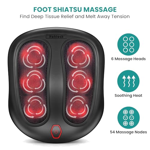 Nekteck Foot Massager with Heat, Shiatsu Heated Electric Kneading Foot Massager Machine for Neuropathy, Plantar Fasciitis, Feet Massage for Pain Relief, Circulation, Christmas Gifts for Man Woman Her