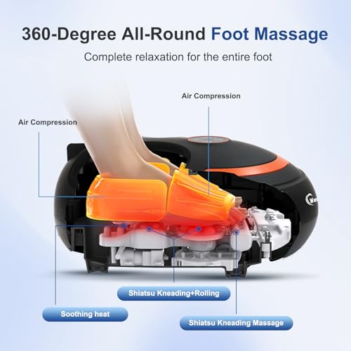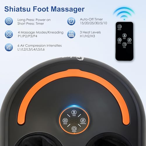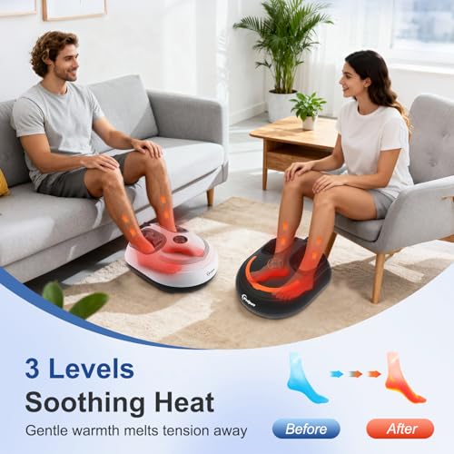 SOOTHING HEAT FUNCTION: The foot massager with heat delivers soothing warmth to cold, stiff feet, making it an excellent foot heater or foot warmer. This heated foot massager features three adjustable temperature levels. A gradual temperature elevation initiates following 10-15 minutes of continuous operation. It helps ease foot fatigue and soreness, promotes circulation, and improves sleep quality.