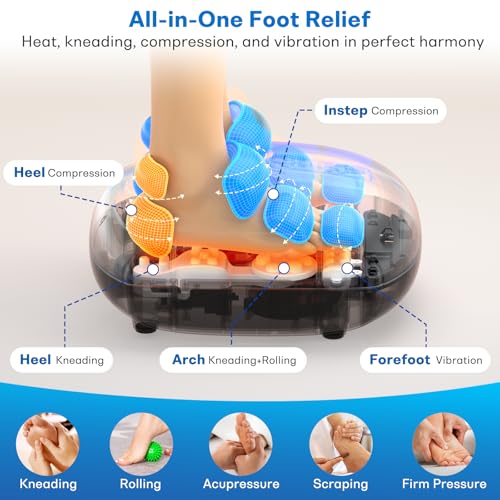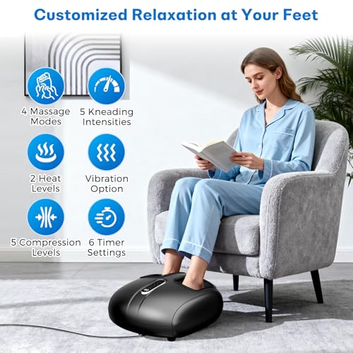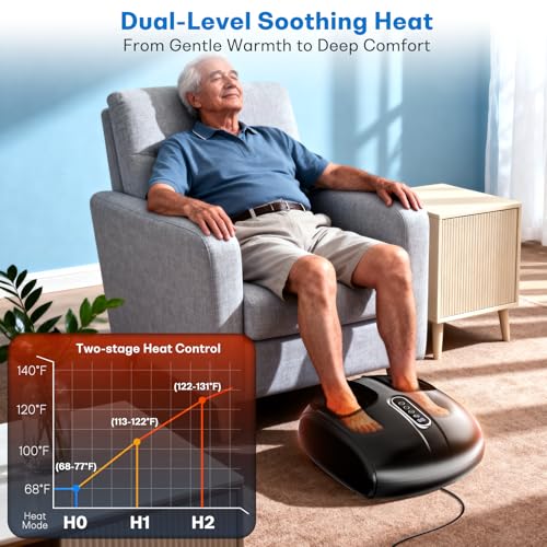 Shiatsu Foot Massager with Heat, Deep Kneading, Vibration and Rolling Compression, 2 Heat Levels, Birthday Gifts for Women Mom Dad, Feet Massage
