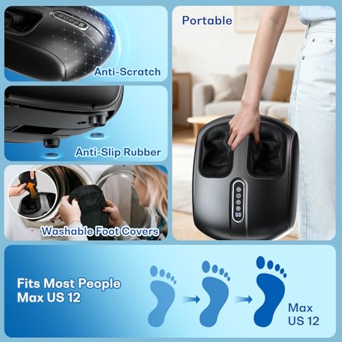 Convenient & Thoughtful Design:This acupressure foot massager features a remote control, an intuitive LCD touch panel, and a built-in storage slot to keep the remote secure and within reach. The breathable, removable foot sleeves can be easily taken out for cleaning, helping maintain freshness and hygiene with every use