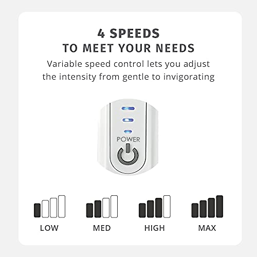Dual Pivoting Heads: The dual pivoting massage heads operate at up to 3,100 pulses per minute; choose from 4 speed settings; switch the interchangeable massage attachments for a softer or firmer massage