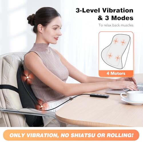 Vibration Massage: Our back support pillow is designed with 4 powerful vibration motors, providing targeted pain relief to your lower back and upper back area. 3 modes and 3 intensity levels to customize your use. Note: No rotating or rolling massage.