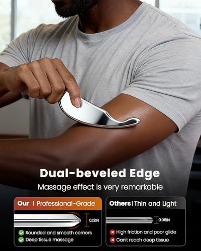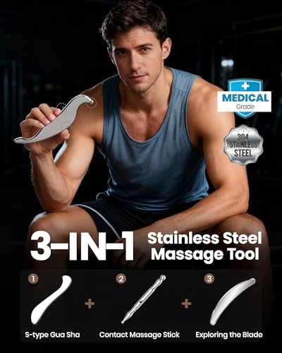 lifechill 3-in-1 Stainless Steel Gua Sha Tool, Professional Trigger Point Massage Tools & Fascia Release Scraper for Muscle Pain Relief of Neck, Shoulder, Leg & Body, Gift for Athletes, Women and Men