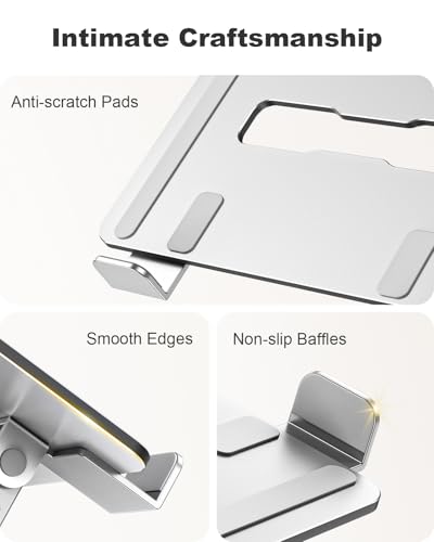 【Stable & Secure Support】Engineered with a dual rod support and industrial-grade bearings, this laptop stand for desk maintains military-grade stability through 10,000 adjustments. In addition, it features a non-slip silicone pad that protects the laptop from scratches and holds it in place. It is an indispensable assistant for programmers/designers.