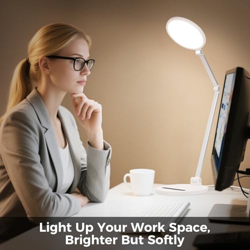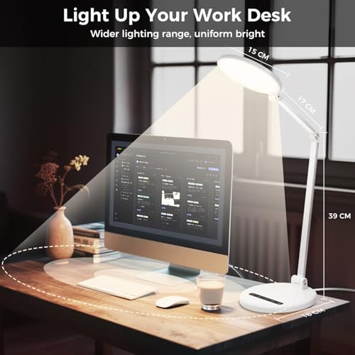 LED Desk Lamp for Home Office, Eye-Caring Desk Light for Video Call, Dimmable 3 Color Temperature 10 Brightness Computer Light, Led Desk Light, Memory & Timer Func, Adjustable Flexible Swing Arm