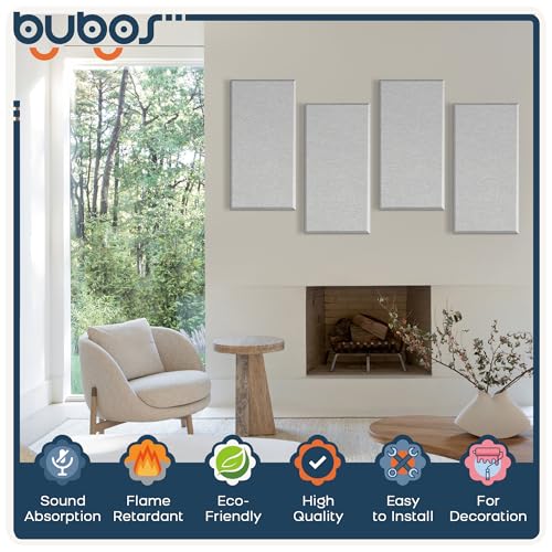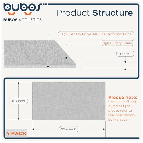 BUBOS 4 PCS Acoustic Panels,23.6”x11.8” Fabric Soundproof Wall Panels,Self-adhesive Sound Absorbing Panels for Studios, Office, Home Theater,Fabric-Clad Grey