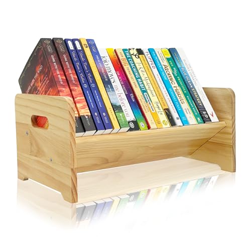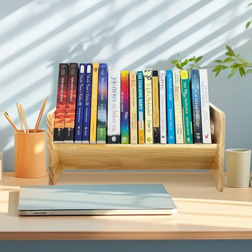 Sturdy Wooden Construction – Made from durable wood with a fashion & sturdy frame, this desk bookshelf holder features a tilting design for easy access to your favorite reads while maintaining stability.