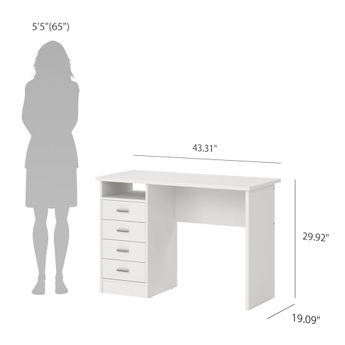 Tvilum 4-Drawer Desk, Modern White Office Writing Desk with Storage, Compact and Functional Desk for Home or Office