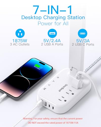 【 Plug In and Use 】 This usb c power strip with 45° low profile right angled flat plug and 5 feet extension cord, you can carry it anywhere. It not only a table lamp, but also a multi-function desktop power strip wtih usb charging station. Note: Please clean the touch switch first and press the switch several times to calibrate the sensing area.