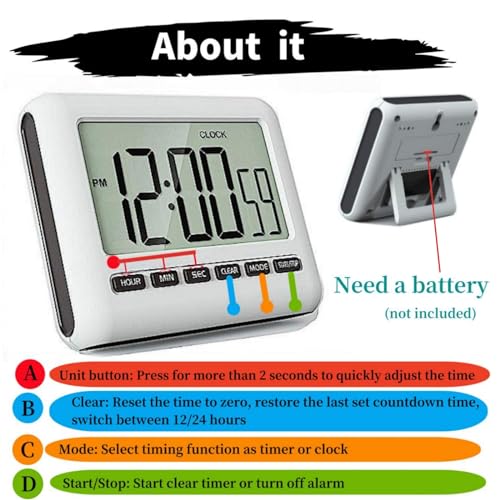 – Easy to Use: The package includes the timer and a manual box; just add 1xAAA battery to start using this multifunctional digital clock(Excluding batteries).
