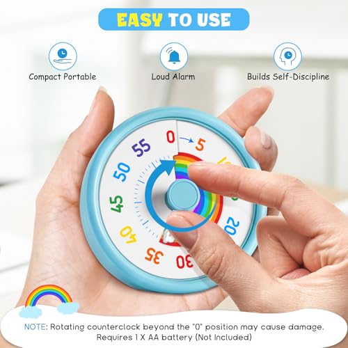 HIPPIH Visual Timer for Kids, 60 Minute Countdown Timers for Classroom Kitchen Office, Rainbow Disk Desk Timer Clock with Silent Operation, Pomodoro Timer Time Management Tools for Toddler ADHD Blue