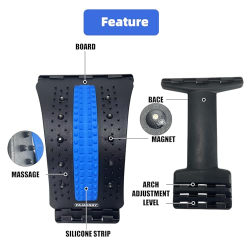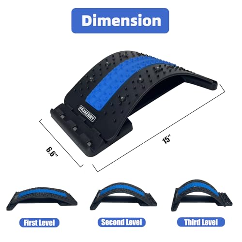 Back Stretcher, 3 Level Adjustable Lumbar Back Cracker Board, Relief for Lumbar Area Pain, Scoliosis Aid, Spine, Herniated Disc, Extra NBR Pad & Silicone Pad (Blue)